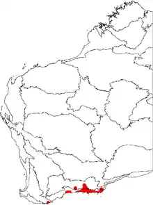 - ↑ "Common Indicator Species for the Presence of Disease caused by Phytophthora cinnamomi" (PDF). Government of Western Australia. Archived from the original (PDF) on 19 March 2011. Retrieved 1 May 2013.