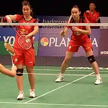 Bao Yixin (Chinese: 包宜鑫; born 29 September 1992) is a Chinese badminton doubles player.[2] She won titles in the women's doubles category with many different partners. She won two World Junior titles at the 2010 BWF World Junior Championships held in Guadalajara, Mexico. In the girls' doubles event, she was crowned World Junior Champion with Ou Dongni and in the mixed doubles she was crowned with Liu Cheng. She also won the mixed doubles at the 2009 Asian Junior Championships with Lu Kai and the mixed doubles at the 2010 Asian Junior Championships with Liu Cheng. Partnering with Tang Yuanting, Bao became the women's doubles champion at the 2015 All England Open. Bao graduated with a bachelor's degree from Xiangtan University.