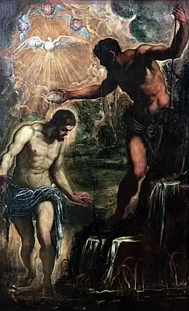 Baptism of Christ is a c. 1580 oil on canvas painting by Tintoretto, one of several treatments of the same subject by that artist. One of his most notable works, it hangs as an altarpiece in the church of San Silvestro, Venice.[1][2][3] The background landscape is dominated by water, which has major symbolic significance in such a scene.[4]