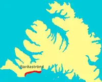 Barðaströnd (Icelandic pronunciation: [ˈparðaˌstrœnt]) is an area of historical interest in northwestern Iceland. It is the coast between Vatnsfjörður and Sigluneshlíðar in southern Westfjords region. This is the place where Flóki Vilgerðarson first set up winter camp.