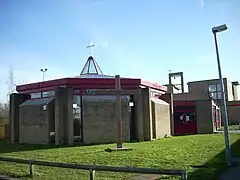 The village has a shopping mall (with a large Tesco Extra supermarket as anchor store), library (in which a post office is also located), primary school, multi-denominational church (rebuilt in 1991[7]) and a pub called The Fox. The village has 2 main playgrounds just off the Village Green with smaller equipment spread out throughout the village green spaces. There is an enclosed Astro football pitch and 2 tennis courts. A skate park was built in the village but was demolished as it became too expensive to keep up. However, a committee of residents has been established to explore the construction of a new facility. There is also a championship 18-hole golf course and hotel. The village also has two fields (one large field known to locals mostly as "The village green" and the smaller school playing field located near the farmhouse) which are used to host sporting events and council events such as the annual village fête.