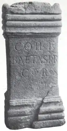 - ↑ "RIB 2169. Altar dedicated by First Cohort of Baetasians". Roman Inscriptions of Britain. Retrieved 26 May 2018.