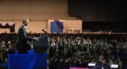 In a break with recent tradition, President Obama did not deliver his farewell address at the White House.[10] Instead, he gave the speech at the McCormick Place convention center in his home city of Chicago, less than four miles from Grant Park, where he delivered his 2008 election victory speech.[11] McCormick Place was also the same venue where Obama delivered his 2012 reelection victory speech.[12] The event was open to the public, with free tickets being distributed on a first-come, first-served basis on January 7.[2]