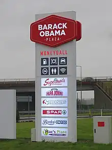 - ↑ "Rush to finish 'Barack Obama Plaza' in €7 million rest stop development - Independent.ie". Independent.ie. Retrieved 8 July 2018.