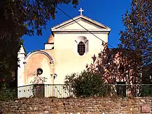 , probably from the former collection of Cardinal Joseph Fesch, which is registered as an historical object.[16] - The old Church of San Pietro in Pisan Romanesque style from the 11th century was the main church for the Pieve of Patrimonio. Barbaggio was then the capital of the piéve. The church of San Pietro was at the centre of the residential area, now isolated over 200m from houses south of the village. The ruined church, last mentioned in cadastral maps of 1863, is not shown on maps. The arches are still well preserved.