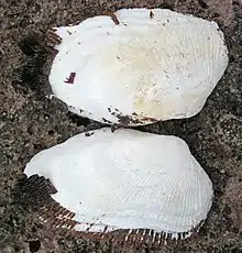 | Shell of Barbatia reeveana showing remnant periostracum | |
