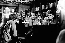 Bill Dana (dark jacket), Don Adams (center), Benton, and Hugh Hefner from the TV program Playboy After Dark