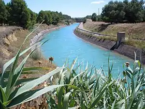 The Bardenas Canal is an aqueduct that carries water from the Navarre town of Yesa, in northern Spain, to the southern part of Navarre and Zaragoza.