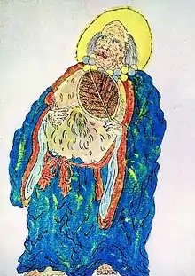 Barefoot Immortal (Chinese: 赤腳大仙), also known as Barefoot Master, is a Taoist deity in Chinese religion.[1] He is known for his numerous appearances in Chinese operas and Chinese ancient literature Journey to the West and Outlaws of the Marsh. The ancient images and ceramic works that people found about the conception of the appearance of Barefoot Immortal demonstrate that in the minds of most people, Barefoot Immortal is a kind god who always has a gracious smile on his face. Never wearing any shoes and half bald head are his unique marks and looks. There are several stories and legends about Barefoot Immortal that have become the widely known classical folk oral literature in China. His original name is Liu Hai before he was widely known as Barefoot Immortal.[2] and Liu Cao[3]