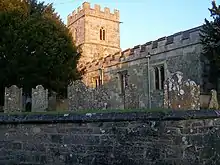 The Church of England parish church of St Martin, in the centre of the village, is a cruciform building with a crossing tower, built mostly in greensand. It stands on a man-made earth bank above the Nadder water-meadows.[10] The 13th-century chancel is the building's oldest part, although the narrowness of the later nave implies the presence of an earlier building.[11] The nave roof is from the 16th century, and the tower (rebuilt in the 15th) carries evidence of a steeper earlier roof.[12] The north transept was rebuilt in 1841 to provide a vestry, and in the 20th century a vestibule was added at the west entrance. The church was designated as Grade I listed in 1960.[13]