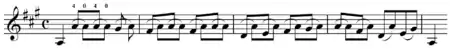 In the following example, from a violin sonata by Handel,[lower-alpha 1] the second measure is to be played with bariolage: