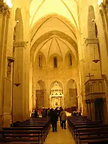 Barletta Cathedral (Italian: Duomo di Barletta, Concattedrale di Santa Maria Maggiore) is a Roman Catholic cathedral in Barletta, Apulia, southern Italy. Formerly the seat of the archbishops of Barletta and Nazareth, it is currently a co-cathedral in the Archdiocese of Trani-Barletta-Bisceglie. It was built in two different styles, Romanesque and Gothic, from the 12th century to the 14th century.