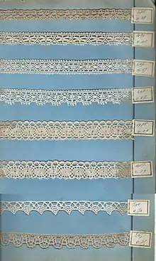 - 1 2 Earnshaw, Pat (1986). Lace Machines and Machine Laces. ISBN 0-7134-4684-6.