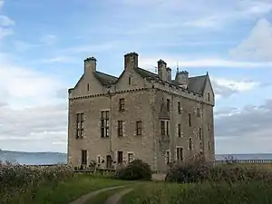 The first building at Barnbougle was a thirteenth-century tower house, constructed by the Mowbrays, a Norman family who were also lords of Dalmeny and Inverkeithing.[4] Sir John Mowbray of Barnbougle, Laird of Dalmeny, was knighted by Sir Thomas Erskine at the battle of Homildon Hill in 1402.[5]