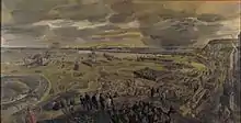 At the outbreak of the Second World War, Freedman was appointed as a full-time salaried war artist by the War Artists' Advisory Committee and sent to France in April 1940 to record the work of the British Expeditionary Force.[7][16] He painted a number of works there but was frustrated by a perceived lack of support, particularly transport provision.[17] He was evacuated to England in May 1940 and worked on coastal defence subjects in Sheerness and the Isle of Sheppey.[17] His full-time contract with WAAC ended in February 1941 after which WAAC purchased individual pieces from him but also offered him several short-term contracts with the Admiralty.[17] By July 1941, Freedman was on board HMS Repulse, and produced the painting 15-inch Gun Turret, HMS Repulse and several individual portraits of her crew.[6][14] The gun turret picture became a print, produced by the Baynard Press for the National Gallery.[4] At the end of 1942 he began an album of portraits of aircraft factory workers and then spent time aboard HMS Tribune, which resulted in another album of portraits and the painting Interior of a Submarine(1943), which was briefly displayed at the National Gallery before being removed from view under wartime censorship regulations.[17] The painting is now in the permanent collection of the Tate.[18] In June 1944 Freedman went to Portsmouth, before travelling to France after the D-Day landings. There he recorded scenes around the landing beaches and at the invasion headquarters, but in July was taken ill and sent to hospital in Liverpool.[19]