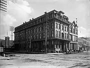 He built two Inter-Ocean Hotels, the first one was built in Denver at Blake and 16th Street and was completed in 1874. Designed in Second Empire style, it was the city's finest hotel at the time.[2][3] He leased it to Howard C. Chapin.[3] The second Inter-Ocean Hotel was built in Cheyenne, Wyoming, after which he faced bankruptcy[4] due to losses at that hotel and other businesses as well as ramifications of the Panic of 1873.[2][3]