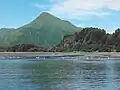 Barometer Mountain is located six miles (9.7 km) southwest of Kodiak on the northeast coast of Kodiak Island.[4] It ranks as the 10th-highest peak on the island,[1] and it is considered Kodiak's most popular mountain.[5] Precipitation runoff from the mountain drains north into Buskin Lake, east to the Buskin River, and south to Devils Creek. Topographic relief is significant as the summit rises 2,200 feet (671 meters) above Devils Creek in 0.85 miles (1.37 km) and the summit is one mile (1.6 km) from the end of a runway at Kodiak Airport. On November 8, 1988, an F-15C from the 21st Tactical Fighter Wing crashed in low visibility into Barometer Mountain and the pilot was killed.[6] The mountain's descriptive name was applied in 1867 by the United States Coast and Geodetic Survey because the behavior of fog and clouds forming on the mountain was said to be predictive of approaching weather.[4][7] The toponym has been officially adopted by the United States Board on Geographic Names.[4]