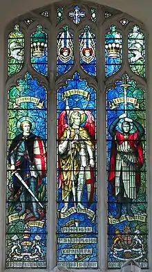 Playfair Memorial Window, St Mary's Church, Redgrave, Suffolk, dedicated to Captain The Hon. Lyon Playfair (1889-1915), Royal Field Artillery, killed in action near Ypres on 20 April 1915, aged 26. He was the only son of Brigadier-General George James Playfair, 2nd Baron Playfair (1849–1939)