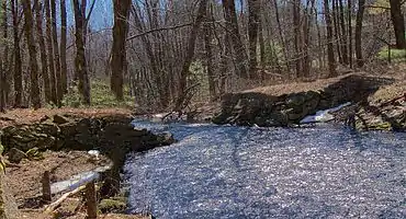 Since the turnpike corporations were in part taking over the road building function of local governments, they were granted certain governmental powers. One of these was the right of eminent domain.[12] The Barre Turnpike Corporation was no exception. The Layout Committee drew up a list of 44 individuals in the three towns who were to receive compensation ranging from zero dollars to $203 (a relative value of approx. $5,000 in current dollars[13]).[14] The total damage payments amounted to $840 (c. $21,000). The highest payment of $203 was awarded in March 1823 to David Rice of Princeton whose property bordered Gates and Old Colony Roads. The length of the Turnpike over Rice's property was approximately 2.375 miles (3.822 km). Rice did not receive payment from the Corporation, so he requested a jury trial which found in his favor a year later, however, in March 1825 the verdict was thrown out by the court. In July of that year, David Rice died and a court dismissed the settlement. His son, Nathan, returned to court and was eventually able to receive payment of the damages.