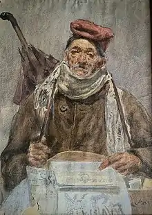 Painter Salvador Dalí sometimes wore the barretina in the 20th century.[1] Some Catalan folkloric characters also wear a barretina, as: the Catalan Christmas figurine caganer, the Christmas log or tió, as well as the fictional characters Patufet, first drawn on the En Patufet magazine by Antoni Muntanyola, and "The Catalan" drawn by Gaietà Cornet i Palau.[2]