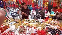 Barrio Chino exists primarily on two blocks along Dolores Street and one block east and west of the street. There was an expulsion of the ethnic Chinese in the 1930s. After that, the ethnic Chinese have mixed and dispersed with the local population.[1] According to the government of Mexico City, about 3,000 families in the city have Chinese heritage.[12] In many parts of the older sections of the city, there are “cafes de chinos” (Chinese cafes), which are eateries that serve Chinese and Mexican food. However, Barrio Chino remains the symbolic home for many of these Chinese-Mexicans, who congregate there for camaraderie and to pass on their culture.[1] The buildings here are no different from the rest of the city, but businesses here are either restaurants or importers. Most of the shops and restaurants here had abundant Chinese-style decorations and altars, but statues of the Virgin of Guadalupe and San Judas Tadeo (a popular saint in Mexico) can be seen as well.[13]