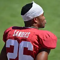 Sanders, the son of Hall of Fame running back Barry Sanders and Aletha House, is often erroneously referred to as "Barry Sanders Jr.;" the elder Sanders has a different middle name. He graduated from Heritage Hall High School in Oklahoma City, Oklahoma.[2] As a freshman in 2008, Sanders ran for 742 yards and twelve touchdowns while helping Heritage Hall to the 2008 Oklahoma 2A state title,[3][4] and he was the only sophomore on the 2009 Tulsa World all-state team.[5]