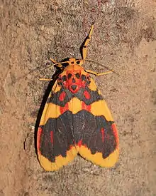 Barsine rubricostata is a species of moth of the family Erebidae, subfamily Arctiinae. It is found in Peninsular Malaysia, Sumatra, Borneo. This is a generally rare species ranging from the lowlands to 1,790 meters.