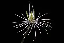 Bartholina burmanniana, the spider orchid, is a species of deciduous, geophytic, flowering plant in the family Orchidaceae.[2] It is one of two species within the Bartholina genus, the other being B. etheliae.[3] The species’ common name refers to its spreading and deeply cut lip that is said to resemble a spider's legs.[4] It is native to the Eastern and the Western Cape Provinces of South Africa, flowering from the end of August to the middle of October and peaking in September.[3] This is one of the species sometimes referred to as "spider orchid".