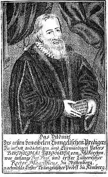 Bartholomäus Bernardi (1487–1551) was the rector and a professor of physics and philosophy at the University of Wittenberg during the time of Martin Luther. He was a student of Luther's.[1]