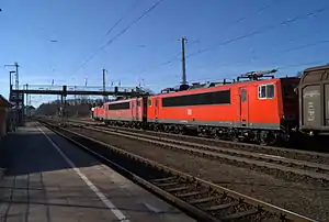 Baruth (Mark) railway station (German: Bahnhof Baruth (Mark)) is a railway station in the town of Baruth/Mark, Brandenburg, Germany. The station lies on the Berlin–Dresden railway and the train services are operated by Deutsche Bahn.