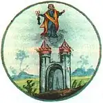 In the last years of the Polish-Lithuanian Commonwealth, troops were stationed here, including the 2nd and 4th Lithuanian Vanguard Regiments and 1st Lithuanian Infantry Regiment.[2] King Stanisław August Poniatowski established the town's coat of arms (decree #17435), the top half containing the coat of arms of Minsk, while the lower half had two stylized towers on a silver background with a passage between them and Saint Peter above the towers holding a key in his hand.
