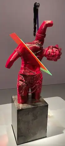 In 2023, Khan was the winner of The Exhibit: Finding the Next Great Artist, a reality TV series that aired on MTV and the Smithsonian Channel.[18] Following the series finale, Khan's final winning commission, The Liberator (2022), was installed in the Hirshhorn Museum and Sculpture Garden in Washington, D.C., from May to July 2023. The work, a mixed media figurative sculpture made from a 3D-printed model of the artist's body and plexiglass, was partly inspired by an 18th-century Buddhist statue, Naro Dakini, in the collection of the National Museum of Asian Art.[19]