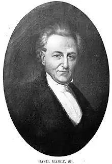 Basil Manly Sr. (January 28, 1798 – December 21, 1868) was an American planter, preacher and chaplain best known as the author of the Alabama Resolutions, which formed part of the argument for creation of the Southern Baptist Convention on proslavery grounds.