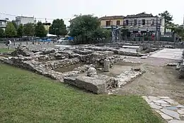 The excavations revealed the foundations of a mid-6th-century church, dedicated to St. Achilleios according to surviving inscriptions.[1][2] Achillios had lived in the early 4th century and been the city's metropolitan bishop for 35 years.[1] The structure is located on the top of the Frourio Hill, the city's acropolis, between the First Ancient Theatre and the later, Ottoman-era Bedesten.[1]