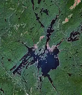 The Baskatong Reservoir (French: Réservoir Baskatong) is a man-made lake in western Quebec, Canada. It was formed following the construction of the Mercier Dam (fr) in 1927[2] and has an area of 413 km2.[3] Since 2007, a 55 MW generating station is in operation at the site of the dam, the reservoir also being used to control the flow of the Gatineau River for several hydroelectric generating stations downstream.