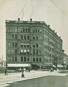 The Bastable Theatre was built by Frederick Bastable in 1893, at a reported cost of $50,000.[4] Archimedes Russell designed the building.[5] It incorporated portions of the walls from the old block that were still standing.[2] In competition with the established Wieting Opera House and Grand Opera House[1] it opened on October 10 that year, with Frank D. Hennessay as its manager.[4] The first show was Beau Brummell starring Richard Mansfield. It was generally unprofitable for the first four years.[1] The theatre had an early success showing the 1897 film The Corbett-Fitzsimmons Fight, on two occasions that year: the first shortly after March, and the second in October.[6]