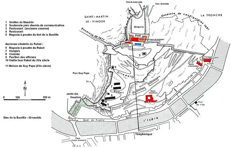- ↑ According to Maurice Mercier in his book Histoire des fortifications de Grenoble de l'an 43 avant JC à 1900.