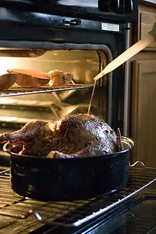 Basting a turkey with a turkey baster