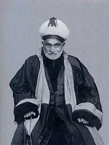 • Nicknamed 'Bison of Surkhakhi' (Russian: Сурхохский зубр, romanized: Surkhokhskiy zubr)[12] and 'the only Ingush Shaykh'.[2] - ↑ According to most sources, approximately, he was born in 1824 and died in 1914.[10][13][6] According to others, he was born in 1821.[2][4] However, Julietta Meskhidze mentions that the fact Batal Hajji was given evidence of his date of birth is contradictory. There also exists different speculations about his date of work, some claiming he was the age of Kunta-Haji.[2] In her earlier work, Meskhidze indicated the date of Batal Hajji's birth as mid of 19th century and the death date as 10–20s of the 20th century.[12] Hajimurad Belkharoev, the great-grandson of Batal Hajji, determined Batal Hajji's birth and death dates as follows: per Hijri calendar, he lived from 25 Dhu al-Qadah 1239 (on al-Arb'ia', Arabic: الأربعاء, i. e. Wednesday night up to Thursday) to 25 Dhu al-Qadah 1332 (also on 'al-Arb'ia'); per Gregorian calendar he lived from July 21–22, 1824 to October 14, 1914 (on Wednesday night up to Thursday, i. e. 'al-Arb'ia'). His burial date is determined by Hajimurad Belkharoev, as per Georgian calendar, as October 25, 1914 (on Sunday).[6]