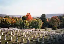 Bath National Cemetery is a United States National Cemetery located in the town of Bath, in Steuben County, New York. It encompasses 28.9 acres (117,000 m2), and as of the end of 2005, had 13,048 interments.