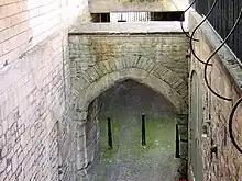 The North and South Gates were demolished in 1755,[9] and the West Gate was demolished in the 1760s.[10] Only part of one of Bath's medieval gates still survives, the East Gate, located near Pulteney Bridge.[11] The remaining wall circuit is now protected as a Grade II listed building and a scheduled monument.