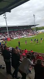 Two views of Mount Pleasant: (left) small seated stand, (right) main stand side
