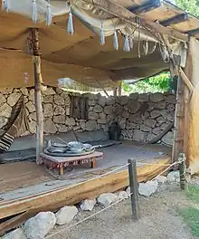 Outside, the "Museum Park" recreates historic buildings from the region with the aim of allowing visitors to experience the region's history more directly. These exhibits include recreations of the houses discovered at Güsir Höyük and at Gre Amer Höyük (on the east bank of the Garzan River, near Işıkveren village) as part of the Ilısu Dam rescue excavation; inhumation customs as observed at Kuriki Höyük (near Oymataş village, 14 kilometres (8.7 mi) south of Batman); the Başur Höyük gaming pieces; the Artuqid Gate from Hasankeyf; and a recreation of 20th-century village life in Hasankeyf. This garden area includes an educational area designed to familiarize school students with the processes of archeological excavation.[2]