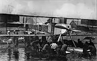![]() Reassembling a floatplane near the shores of Lake Tanganyika.[34] |