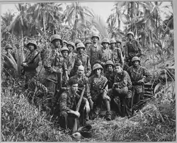 Major General Allen H. Turnage, in command of the 3rd Marine Division, determined that the Japanese lodged on the trail represented a threat to the airstrips and had to be removed, with the assault beginning on the morning of 9 November. The Japanese had several well-placed machine guns and were attempting an attack of their own; a bloody stalemate developed. Private First Class Henry Gurke of the 3rd Marine Raider Battalion was awarded the second Medal of Honor of the Bougainville campaign during this fight by throwing himself on a grenade and saving his foxhole-mate.[12] Marine firepower eventually proved too much for the Japanese, who retreated to and through Piva Village in the early and mid-afternoon. The Marines took possession of the vital intersection of the Piva and Numa Numa Trails.[13]