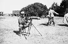 The Mahdists in the trenches, equipped with outdated rifles and makeshift ammunition, designed to wait until Hunter's forces were well within range to open fire.[24] The entrenched Mahdists weathered the continual barrage of the advancing forces until the distance shrunk to one hundred yards. Together, the Mahdist line erupted in rifle fire, hammering the advancing battalions and, in particular, the stationary 10th Sudanese. Two British officers, Brevet-Major Henry Sidney and Lieutenant Edward Fitzclarence, three Egyptian officers, and a dozen regular soldiers were killed in the volleys. Over fifty were wounded across the brigade.[34] Following this exchange, the battalions abandoned their orderly approach and charged the trenches with their bayonets. A furious melee ensued, wherein soldiers of MacDonald's brigade poured into the trenches and through the town, engaging in vicious hand-to-hand combat with Mahdists wherever they were to be found in the winding alleyways and narrow houses of Abu Hamed.[35] In several places artillery was used to dislodge particularly stalwart defenders, while the Mahdist cavalry, looking on as Hunter's battalions swept through the town, turned to flee south towards Berber.[32]