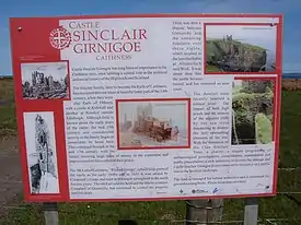 Glenorchy and some of his troops remained in Caithness for some time, levied rents and taxes on the people and subjected them to the most grievous oppression. He sent the remainder home immediately after the battle.[2] However, George Sinclair of Keiss continued his opposition and laid siege, with firearms and artillery, to Castle Sinclair Girnigoe, which he took after feeble resistance from the garrison. As a result, he and his three friends who had assisted him, Sinclair of Broynach, Sinclair of Thura and Mackay of Strathnaver, were declared rebels.[8] The political current having turned in favour of Sinclair of Keiss, however, that was quashed.[9] Having failed to regain his inheritance by force, Sinclair of Keiss then turned to the law.[1] Through the influence of the Duke of York, afterwards King James VII of Scotland,[8] he took his place as Earl of Caithness on 15 July 1681, and his lands were restored on 23 September. Campbell of Glenorchy was made Earl of Breadalbane by way of compensation.[1][10]