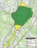 The Battle of Averasborough was fought on the grounds of Oak Grove, near Erwin, North Carolina.[1] Lebanon was used as a hospital.[2] Prior to the battle, Union soldiers raided the Ellerslie Plantation for supplies and quartered troops in the plantation's main house.[3] The Averasboro Battlefield Historic District was listed on the National Register of Historic Places in 2001.[4] The American Battlefield Trust and its partners have acquired and preserved more than 568 acres (2.30 km2) of the Averasborough battlefield as of mid-2023.[5]