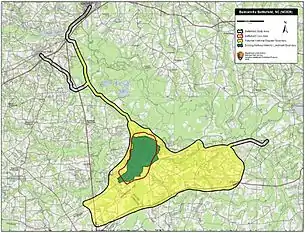 The site of the battle is preserved as the Bentonville Battleground State Historic Site, which was declared a National Historic Landmark in 1996. The park, founded in 1965, includes 130 acres (0.53 km2) of the battlefield and runs a visitor's center adjacent to the restored Harper House, which served as a hospital for Union soldiers during the battle.[34] The Bentonville Battlefield Historical Association and the American Battlefield Trust also own portions of the battlefield not included in the state park, including 1,770 acres (7.2 km2) by the Trust alone.[35] The Trust and its partners, including the historical association, have acquired and preserved more than 2,063 acres (8.35 km2) of the battlefield in more than 55 separate acquisitions since 1990.[36]