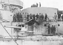 Evstafi was struck five times during the engagement, suffering 34 killed and 24 wounded. Yavuz had only been struck once, but lost 13 crew (12 Germans and one Turk).[2] As a result of the ammunition detonation near the battlecruiser's 5.9-inch gun, the Ottomans decided to decrease the amount of ready-to-use shells and cartridges in the casemates.[6]